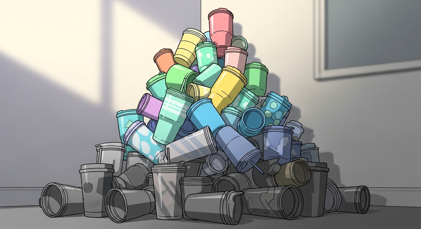 텀블러가 진정한 친환경이 되려면 하나를 오래 사용하는 것이 핵심이지만, 기업들은 계속해서 신제품을 출시하며 '친환경 소비'라는 명목으로 과소비를 조장하고 있습니다.