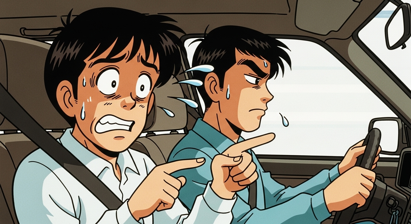 서킷 위에서는 빗길에서도 완벽한 코너링을 보여주는 베테랑이지만 현실 도로교통법상 필요한 일반 운전면허증이 없어 조수석에 타야만 했기 때문입니다.